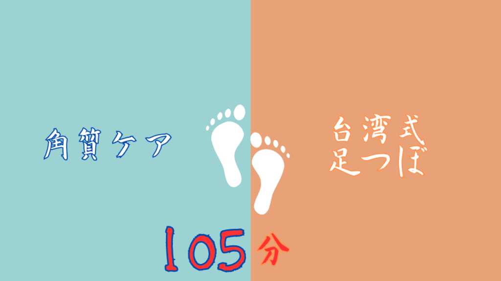 *施術内容:** - たこ、小さな魚の目、踵のひび割れのケア🦶75分 - 足専門店の台湾式足つぼ🇹🇼30分 上記時間はフットバス.パックの時間を含む **注意事項:** - 予約時間〜5分前までにご入店いただけるよう、前のお客様との重なりを避けるため、ご協力をお願いいたします。 - 遅刻の場合は、電話または公式LINEトークでご連絡ください。 - 月・火・金・第2.4土曜日は女性のお客様限定です。 -オーナー指名の場合、備考欄にオーナー指名と記載下さい。指名料+1,000円となります。 オーナーは水.木.土(第2.4以外).日曜日のみ対応可能です。 **服装について:** - 膝まであがる服装でのご来店、もしくはハーフパンツのご持参をお願いいたします。