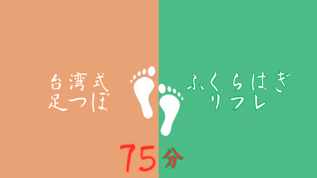 *施術内容:** - 足専門店の台湾式足つぼ🇹🇼60分 - 第2の心臓、ふくらはぎリフレ🦵15分 上記時間はフットバスの時間を含む **注意事項:** - 予約時間〜5分前までにご入店いただけるよう、前のお客様との重なりを避けるため、ご協力をお願いいたします。 - 遅刻の場合は、電話または公式LINEトークでご連絡ください。 - 月・火・金・第2.4土曜日は女性のお客様限定です。 -オーナー指名の場合、備考欄にオーナー指名と記載下さい。指名料+1,000円となります。 オーナーは水.木.土(第2.4以外).日曜日のみ対応可能です。 **服装について:** - 膝まであがる服装でのご来店、もしくはハーフパンツのご持参をお願いいたしま