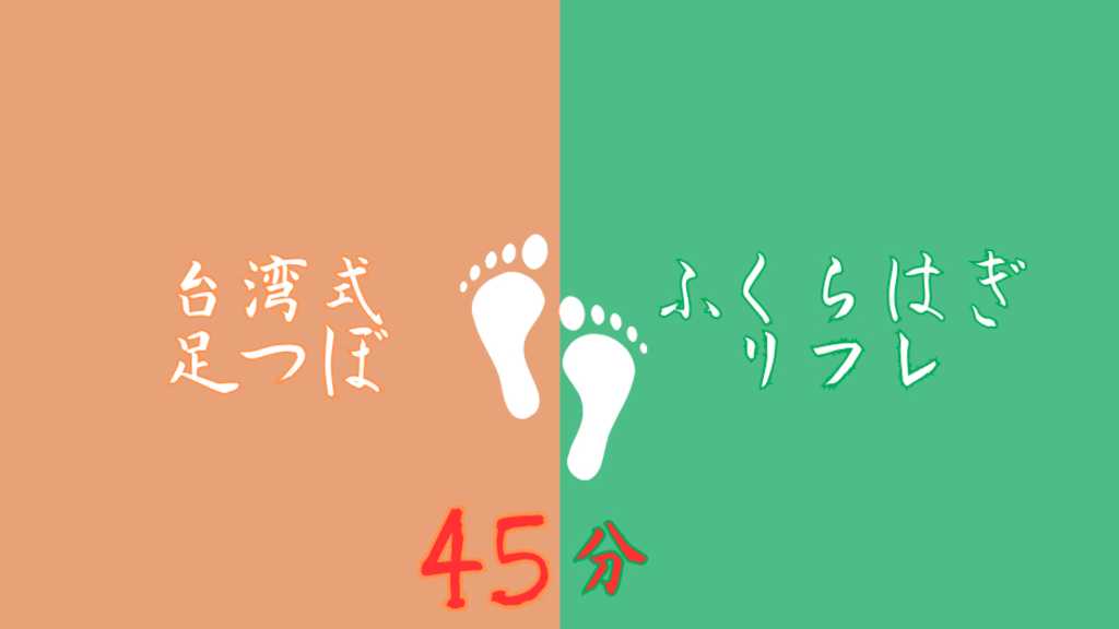 *施術内容:** - 足専門店の台湾式足つぼ🇹🇼30分 - 第2の心臓、ふくらはぎリフレ🦵15分 上記時間はフットバスの時間を含む **注意事項:** - 予約時間〜5分前までにご入店いただけるよう、前のお客様との重なりを避けるため、ご協力をお願いいたします。 - 遅刻の場合は、電話または公式LINEトークでご連絡ください。 - 月・火・金・第2.4土曜日は女性のお客様限定です。 -オーナー指名の場合、備考欄にオーナー指名と記載下さい。指名料+1,000円となります。 オーナーは水.木.土(第2.4以外).日曜日のみ対応可能です。 **服装について:** - 膝まであがる服装でのご来店、もしくはハーフパンツのご持参をお願いいたしま
