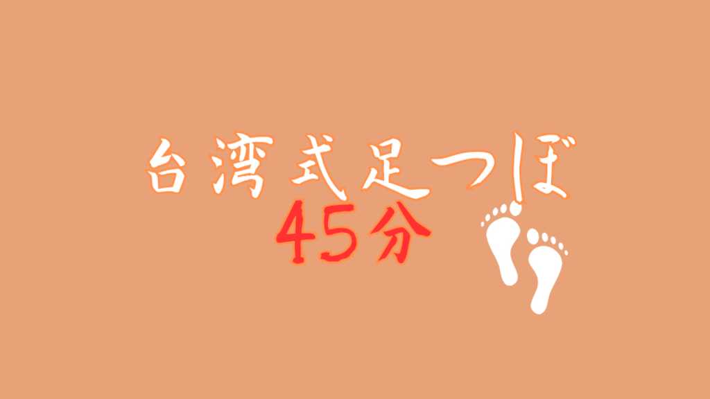 *施術内容:** - 足専門店の台湾式足つぼ🇹🇼45分 上記時間はフットバスの時間を含む **注意事項:** - 予約時間〜5分前までにご入店いただけるよう、前のお客様との重なりを避けるため、ご協力をお願いいたします。 - 遅刻の場合は、電話または公式LINEトークでご連絡ください。 - 月・火・金・第2.4土曜日は女性のお客様限定です。 -オーナー指名の場合、備考欄にオーナー指名と記載下さい。指名料+1,000円となります。 オーナーは水.木.土(第2.4以外).日曜日のみ対応可能です。 **服装について:** - 膝まであがる服装でのご来店、もしくはハーフパンツのご持参をお願いいたします。