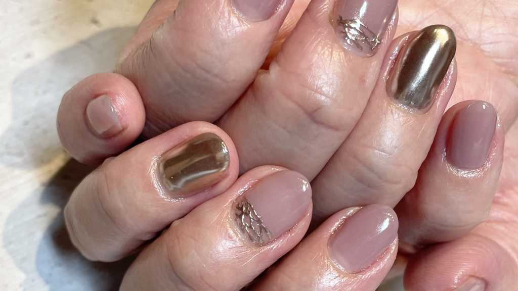 お好きな本数で、ミラーネイルが入れられます!(本数により料金が変わります。) こちらはミラー2本+アート2本で、8,800円となります。