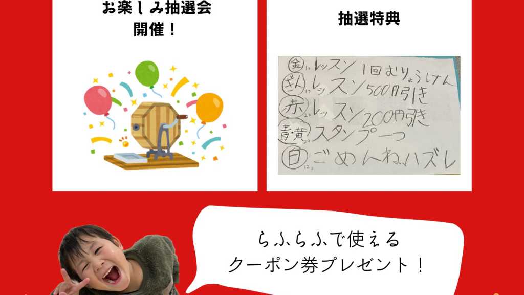 3/28(土)13:15〜14:15のレッスン後に 大抽選会を行います!! どなたでもご参加オッケー! 抽選会だけ参加もオッケー!です☆ 14:55頃までやっておりますので ガラガラを回しに来てください♪