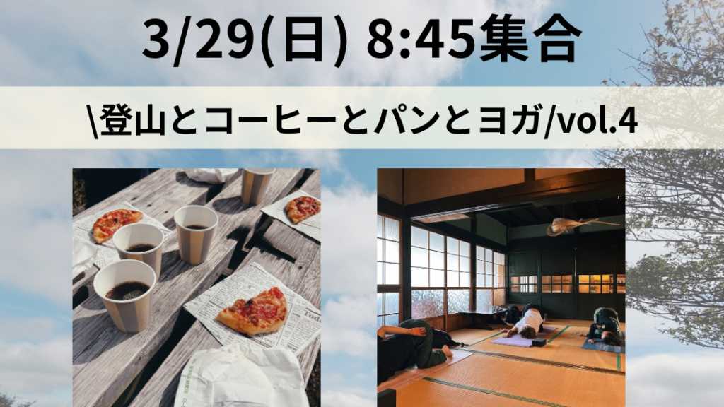 ■初心者の方でも登りやすい宝篋山を景色を楽しみながら山頂を目指します。 山頂ではパンとコーヒーで一休みしながら、開けた景色を楽しみ、下山後は各自、車でイリアイテンポに移動し、古民家でゆったりとリラックスヨガを行い登山で疲れた身体を緩めて、心も身体も癒される1日を! ■当日の流れ 8:45 市営小田駐車場に集合。ヨガマットは車に置いて登山を楽しみます。 市営小田駐車場の行き方はこちら↓ https://maps.app.goo.gl/yMeGh4RfAqUwkCq48?g_st=com.google.maps.preview.copy ⏬ 12:00頃に下山予定。各自車でイリアイテンポに移動します。 リラックスヨガ(1時間の予定)身体を癒してレッスン後は各自解散となります。 ⏬ 解散時刻予定:14:00頃。前後する可能性があります。 ■予約の際の注意事項 レジャー保険の加入に際し、お名前フルネームと年齢が 必要となりますので、備考欄にご年齢の記載をお願いいたします。 ■キャンセルに関して ・当日キャンセル:1,000円 (保険、軽食代) ※体調不良等の場合もお早めにご相談ください。 キャンセルの場合は早めのご連絡をお願いいたします 連絡先:satomi.yogalesson@gmail.com までご連絡お願いいたします