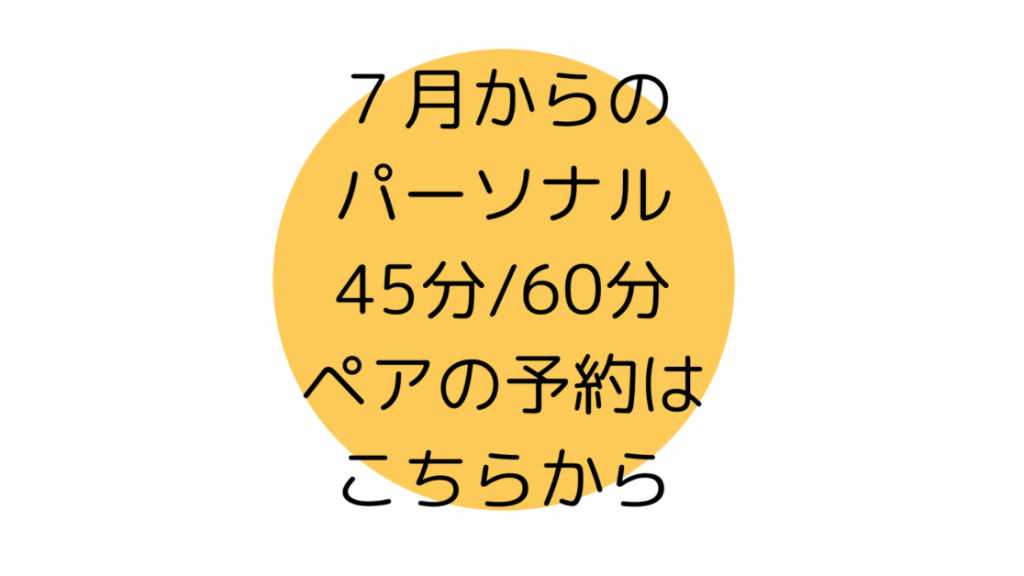 ※パーソナル45分・60分、ペアレッスン共にここからご予約お願いします✨ ※金額はメニューより異なります(下記を参考にして下さい) ■サービスの内容 45分または60分間お一人ずつのお体に合わせたメニューで動きます。 全身(お尻、お腹、背中、肩周り)丁寧に動かしたい方はこちらがおすすめです。 menu パーソナルレッスン 45分 都度払い 6000円 2回チケット 11500円 4回チケット 22000円 60分 都度払い 7500円 2回チケット 14500円 4回チケット 28000円 ※チケット1ヶ月有効 ペアレッスン(最大4名様) 都度払い 3500円 5回チケット 15000円 (3ヶ月有効) ■当日の流れ お着替えして頂いて始めていきます。お着替え、水分、タオルをお持ちください。お着替えスペースございます。自転車やバイクはお店の前に停めていただけます。駐車場はございませんので、近隣のパーキングエリアにお停め下さい。ふたば学舎が1番近いです。 ■予約の際の注意事項 ご予約が埋まりやすくなりますのでまとめてご予約も可能です。 ■変更・キャンセルに関して 変更はお手数ですが公式ラインまでご連絡お願いします。 前日キャンセルまで無料です。当日キャンセルのみレッスン料の全額お支払いをお願いします。ご家族の体調不良等のやむを得ない場合の当日キャンセルはキャンセル料は頂いておりません。