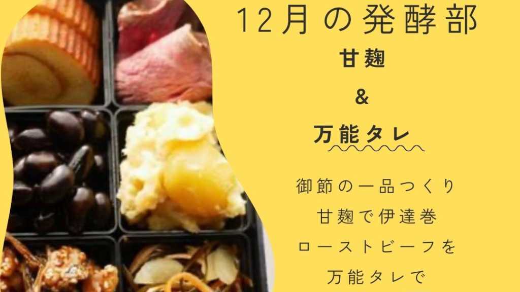12月の発酵クッキング部❗️ おせちに役立つメニューをご紹介✨ 1つ目【甘麹】 甘味料に! 飲む点滴甘酒に! 今回はおせちに手作り伊達巻つくり🎵 2つ目【万能タレ】 焼肉をはじめ醤油ベースのタレです 今回は ローストビーフのタレに🎵 ありきたりの塩麹にはもう飽きた??? ここだけでしか手に入らないブレンド麹調味料🌟ゲットしにきてください🎵 約500ml持ち帰り(目安1ヶ月使用料) ランチはミニおせち 【西区STEAMCLUBでの開催】 12月17日水曜日 10時30分〜13時 【場所】 大阪市西区北堀江4丁目6-17space-1ビル3階 【参加費】 4500円 【持ち物】 エプロン 手拭きタオル 瓶またはタッパー500ml入る容器 2個 【お申し込み】 https://tol-app.jp/s/smilemore/tmo6pi DMまたはLINEまで!メッセージくださいませ✨✨ 12月の福島区わくわくさんへの出張発酵クッキング部❗️ 12月19日金曜日 10時30分〜12時30分 福島区の Wak Wak STEAMlabさん @wakwak_steam_lab で出張開催させていただきます✨ 【場所】 〒553-0002 大阪府大阪市福島区鷺洲5丁目6−45 ライフステージ福島 1F-A 【費用】4500円(麹調味料とランチ付) ※増産毎追加600円 【定員】 8名 【持ち物】 エプロン 手拭きタオル 瓶またはタッパー500ml入る容器 2個 【お申し込み】 わくわくさんへDM または予約サイトよりお申し込みくださいませ🎶