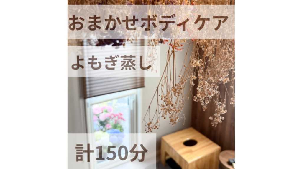 本場韓国の生薬を使ったよもぎ蒸し30分とガチガチコース120分のメニューです。 【施術内容】 ご新規のお客様は初回20分前後カウンセリングがあります。 ・よもぎ蒸し…生薬やよもぎの有効成分を経皮吸収。冷え性や汗をかきにくい方、ダイエットや健康維持に興味のある方に受けていただきたいメニューです。 ・ガチガチコース…オイルを使ったリンパドレナージュにストレッチや深層筋の指圧を混ぜて、深くまで届かせます。 骨盤&肩甲骨のケア、姿勢や骨盤の歪み、つまりを感じられる方、肩関節や肩甲骨の可動域が狭い方におすすめ。 ・ドライヘッド 体の状態によりマッサージの内容を変更する場合がございます。 お悩みが深い箇所から施術いたしますのでご了承くださいませ。 スッピンでのご来店をオススメしています。 またクレンジングご希望の方はお声掛けください。 アフターティー付き。 ⭐︎⭐︎⭐︎⭐︎⭐︎⭐︎ ⭐︎⭐︎⭐︎⭐︎⭐︎⭐︎ ⭐︎⭐︎⭐︎⭐︎⭐︎⭐︎ ※猫アレルギーをお持ちの方や動物が苦手な方は備考欄にメッセージをご記入ください。事前に隔離致します。 また下記に当てはまる方はサービスの提供をお断りしております。ご了承ください。 ↓ 〈高血圧、心疾患、妊娠中の方、生理中の方、感染症、よもぎやハーブのアレルギーがある方持病や重篤な病気をお待ちの方〉 ご来店後のお支払い方法は 現金、PayPay、d払い、クレジットカード(タッチ決済のみ)ががご利用頂けます。 クレジットカード(タッチ決済機能なし)でのお支払いをご希望の方はネット予約時の事前決済サービスのご利用お願い致します。さ