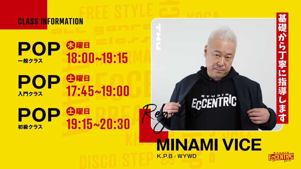 14歳からBREAKDANCEに出会い30数年。 POP.LOCK.BREAKIN.ニュージャックスイングと様々なスタイルをこなし個人の優勝やTEAM『PACKETMAN』ではコンテスト三連覇を成し遂げ、SHOWCASEで神戸・関西を中心に活動 現在はユニットでの活動や、結成10数年のTEAM『K.P.B』のメンバーとして現在もSHOWCASEなどで現役活動中。 【POPPIN】 基本的なHITやWAVE、ロールやツイストを中心に構成されたLESSONです。 あらゆる部位の使い方や流れの重要性をわかりやすく指導します。 女性も力の伝え方で力強いHITが打てるようになります。 HITやPOP.WAVEを中心にリズムトレーニング、アイソや簡単な振り移しなど。 他ジャンルをしていても身体に取り入れれば有効的に使えます。