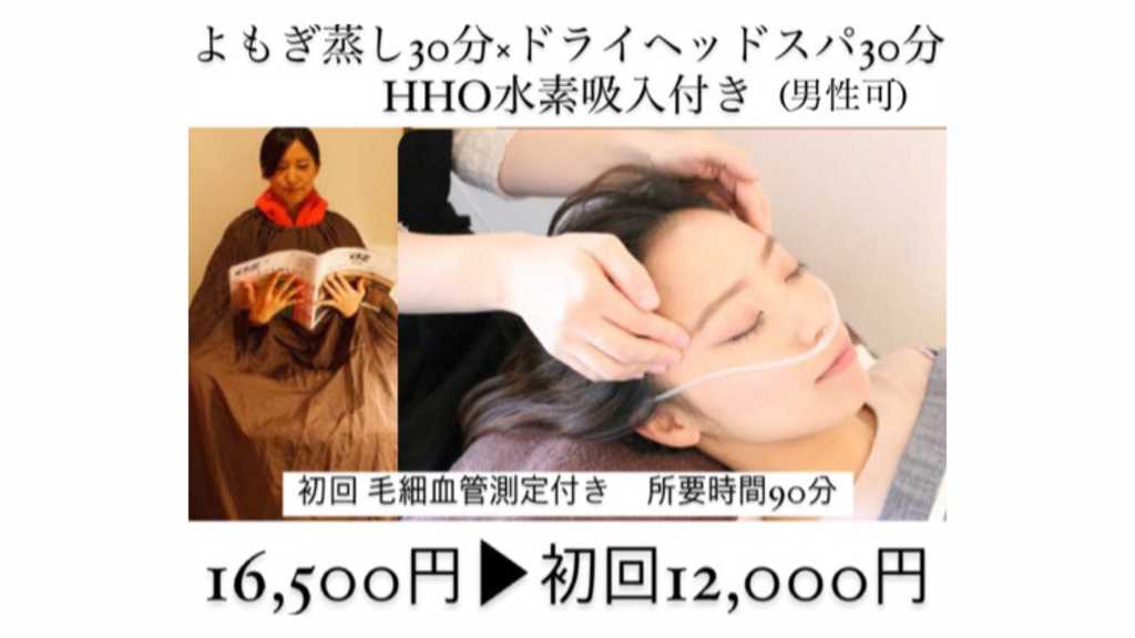 16,500円▶︎初回体験12,000円 毛細血管測定付き 【1,100円相当】 2回目以降はリピーター様価格や お得な回数券があります。 ~施術内容~ オリジナル漢方よもぎ蒸し30分 脳リセットドライヘッドスパ30分 どちらも医療レベルのHHO水素酸素吸入付き ※よもぎ蒸しは妊娠初期や生理中は出来ない場合があります。その場合はよもぎ蒸し無しでドライヘッドスパ60分に変更になります。 ■キャンセル、変更について 前日▶︎5,500円 当日▶施術料全 ※新規ご予約の無断キャンセルに対してキャンセル料金の請求を専門家へ依頼し請求する事と致します。 ※予約変更の際は請求の対象とならないよう公式LINEよりご連絡をください。 ■お支払い方法 現金・カード一括 よもぎ蒸し/ドライヘッドスパ/ヘッドスパ/ヘッドマッサージ/水素吸入/水素/HHO水素/恵比寿/広尾/代官山/渋谷/中目黒/目黒/肩こり/プライベートサロン/サロン/よもぎ蒸し/ドライヘッドスパ/ヘッドスパ/ヘッドマッサージ/水素吸入/水素/HHO水素/恵比寿/広尾/代官山/渋谷/中目黒/目黒/肩こり/プライベートサロン/サロン/よもぎ蒸し/ドライヘッドスパ/ヘッドスパ/ヘッドマッサージ/水素吸入/水素/HHO水素/恵比寿/広尾/代官山/渋谷/中目黒/目黒/肩こり/プライベートサロン/サロン//よもぎ蒸し/ドライヘッドスパ/ヘッドスパ/ヘッドマッサージ/水素吸入/水素/HHO水素/恵比寿/広尾/代官山/渋谷/中目黒/目黒/肩こり/プライベートサロン/サロン/よもぎ蒸し/ドライヘッドスパ/ヘッドスパ/ヘッドマッサージ/水素吸入/水素/HHO水素/恵比寿/広尾/代官山/渋谷/中目黒/目黒/肩こり/プライベートサロン/サロン