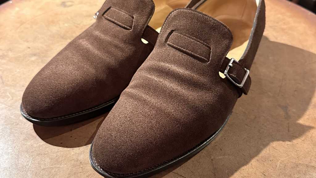 やさしく整えて、ふんわりとした質感に。 「スエードコース」は、デリケートなスエード素材専用のケアコースです。全体の汚れやホコリを丁寧に落としたあと、専用スプレーで防水と保湿を同時に行い、スエード特有の柔らかな風合いを整えます。毛並みをきれいに立ち上げることで、ふんわりとした質感と深みのある色味がよみがえります。雨や汚れにも強くなり、日常使いの靴をきれいに保つのにぴったりです。所要時間は約45分ほどです。 ロングブーツの場合は、+500円となります。 ご予約の際のお願い ・ご予約当日に予約時間に遅れる場合やキャンセルの場合は必ずご連絡ください。 ・ご連絡なしで10分以上遅れる場合は無断キャンセルとなりますのでご注意ください。 ・お支払い方法は現金となります。 雨天時のお願い カウンターでの靴磨きにご来店いただく際、雨の日は靴が濡れた状態での作業が難しいため、ビニール袋などで濡れないようにしてお持ちください。濡れたままお持ちいただくと、仕上がりに影響する場合がございます。ご協力をお願いいたします。