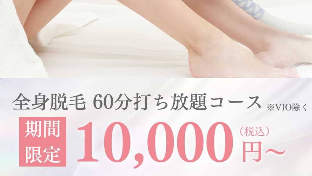 ■サービスの内容 ladies ¥10,000 / men's ¥13,000 ※VIO以外が対象部位になります。 ■予約の際の注意事項 男性新規の受付不可 背中・うなじ以外の部位は前日までにシェービングを済ませてご来店ください。 剃り残しのシェービングは所要時間内での対応となります。剃り残しが多い場合はシェービングに時間がかかってしまう為、脱毛できない箇所が発生してしまうことがあります。予めご了承ください。 ■キャンセルに関して 前日キャンセル 0% 当日キャンセル 50% 無断キャンセル 100%