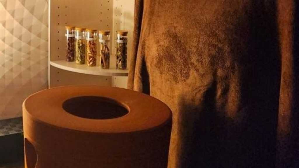黄土よもぎ蒸しは、黄土の座器による遠赤外線の効果でお体を芯から温めます。よもぎの他約26種類の漢方薬草をブレンドしたものを蒸して蒸気を下半身の粘膜にあてます。 3種類の薬草からお体のお悩みに合わせたものをお選び頂けます
