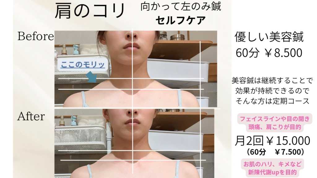 【電気は怖いけど美容鍼気になる。。。】 [特に、浮腫、頭痛、肩こり、フェイスラインが気になる方にオススメ] お顔の鍼をメインでやりつつ、お腹をみて身体の中から改善していきます✨ マッサージでも全身軽く施術するので肩こり、頭痛、疲れた身体もじっくりほぐすことで、心身の緊張を解きほぐします。丁寧な手技と心地よいリズムで、日々のストレスや疲れを癒やし、痛みを和らげ深いリラックス状態へと導きます。 ⭐今症状がない方でも、蓄積により自分の症状が出やすい部分にしんどさや痛みが出やすくなっているので定期なケアをおすすめしています。 ※問診後、服の上からのマッサージとなりますので お着替え無しで施術を受けて頂けます。 【備考の欄に記入のお願い】 ①生年月日 例)1999/10/22 ②足湯+ハンドマッサージをプラス20分ほどオプションで付けることが出来るのでご希望の方はご記入ください。 オプションはプラス500円 例)足湯あり