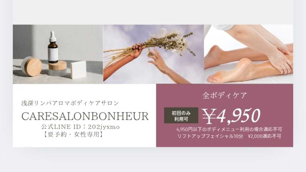 ご新規様限定で浅深リンパアロマトリートメントの 良さをご体感頂けるお得なメニューです 【4,950円以下のメニュー 適応不可】 【リフトアップフェイシャル10分 適応不可】