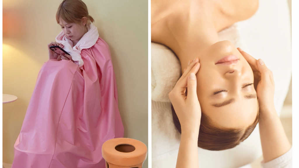 ■よもぎ蒸しと小顔リンパ幹細胞トリートメントの セットの施術です お得なセット価格ですのでオススメです♪ ■よもぎ蒸し 体を内側から温めて代謝を促進し、血行を改善する効果があります。 よもぎの成分が粘膜から経皮吸収され、生理痛や冷え性、むくみの改善、乾燥肌、ニキビ、シミしわなど様々な効果が期待できます!男性にも人気が上がってます★温活で体質改善!! ■小顔のマッサージと幹細胞の美容液やパックで艶々にお仕上げいたします☆ ゆっくりおくつろぎください 🉐内側からと外側からのダブルでアプローチ‼︎ ■キク科アレルギーのある方、生理中はご利用をお控えください
