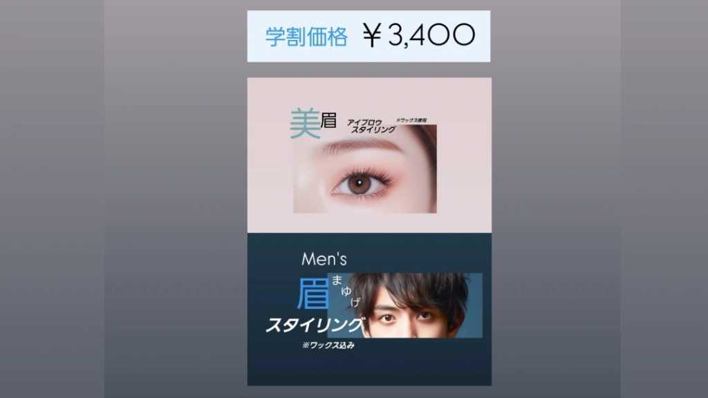 骨格や雰囲気、お好みに合わせて眉毛の形をスタイリング! ワックス脱毛、カット、ツイザー(毛抜き)を使用します。 ※ツイザーによる毛抜きなどが痛い場合はシェーバーなどで対応いたします