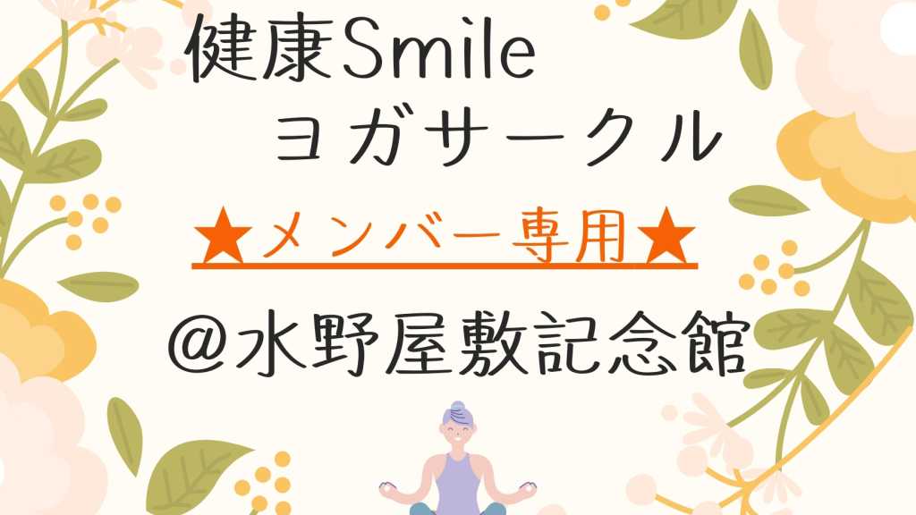 ~健康Smileヨガサークル@水野屋敷記念館~ メンバー専用の予約ページです。 ※ヨガマットレンタルの場合、備考欄に記載お願いします。 一人ではなかなか続けられない(^^;)仲間が集まり、それぞれのペースで気楽に続けていけるヨガサークルです。 基本は奇数週の土曜日開催(変動あり、予約カレンダーをご確認くださいm(_ _)m) 気軽にご都合よい日にご参加ください♪ ~心身健康に、楽しく一生自分の足で歩ける身体に~