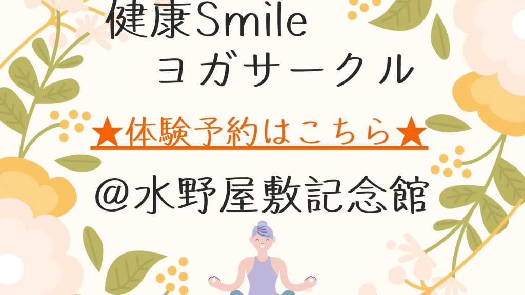 ~健康Smileヨガサークル@水野屋敷記念館~ 住所 : 美浜町大字北方字十二谷1-2 【隔週(奇数週)土曜日開催】 ※変更の場合あり(予約カレンダーでご確認くださいm(_ _)m) 体験用の予約ページです。 時間 : 10:00~11:00 ★開始15分前から入室可 ★服装 : 動きやすければ何でもOK(お着替え可) ★持ち物 : タオル、水、あればヨガマット(無料レンタルあり) ※レンタルマットは数に限りがありますので、希望の方は予約時、備考欄に記載お願いします。