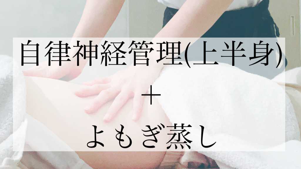 背中、腕、首や頭の筋肉や骨を優しくほぐします。 背面は背中〜仙骨にかけて、オイルトリートメントで緊張しがちな背中を流します。 自律神経に関わる、血液循環、呼吸、消化吸収、体温調節、免疫力、睡眠などを整えるアプローチをします。 お悩みや気分に合わせて選べる、韓方熟成よもぎ蒸しを一緒にお受けいただく事で、よりPONNYO後の変化を期待できます。 🕐所要時間はご来店からお帰りまでの目安です。 施術内容やカウンセリングにより前後する場合もあります。 ※生理中の方: 生理中でもPONNYO、よもぎ蒸し共に可能ですが、出血の多い3日目くらいまでを避けていただいた方が、安心してお受けいただけます。 ※妊娠中の方: PONNYOの施術はできませんので、ご了承下さい。 よもぎ蒸しは安定期より可能です。