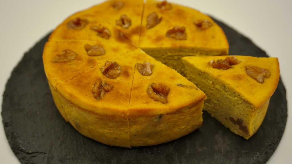 蔵王町のかぼちゃを生地に練り込み、素材本来の甘みを引き出しております。生地の中や表面にはくるみが入っており相性の良い組み合わせの一品です✨ ホールケーキ(2種盛り、4種盛り以外)はカットせずのお引き渡しになり、カット(8等分)ご希望の方は100円の追加料金を頂いております。ご希望の方は備考欄にコメントの程お願いいたします。